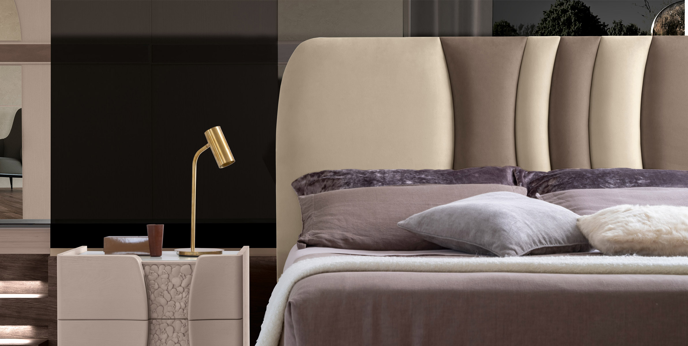 Ispirata alla natura e alle sue forme in evoluzione, MONTREAL traduce energie e geometrie organiche in arredi dalla forte identità: linee sinuose, pattern materici e finiture contemporanee dialogano con tessuti morbidi e dettagli luminosi per creare una nuova filosofia dell’abitare notturno. Una collezione coerente, elegante e funzionale, progettata per amplificare lo spazio e valorizzare ogni ambiente.
