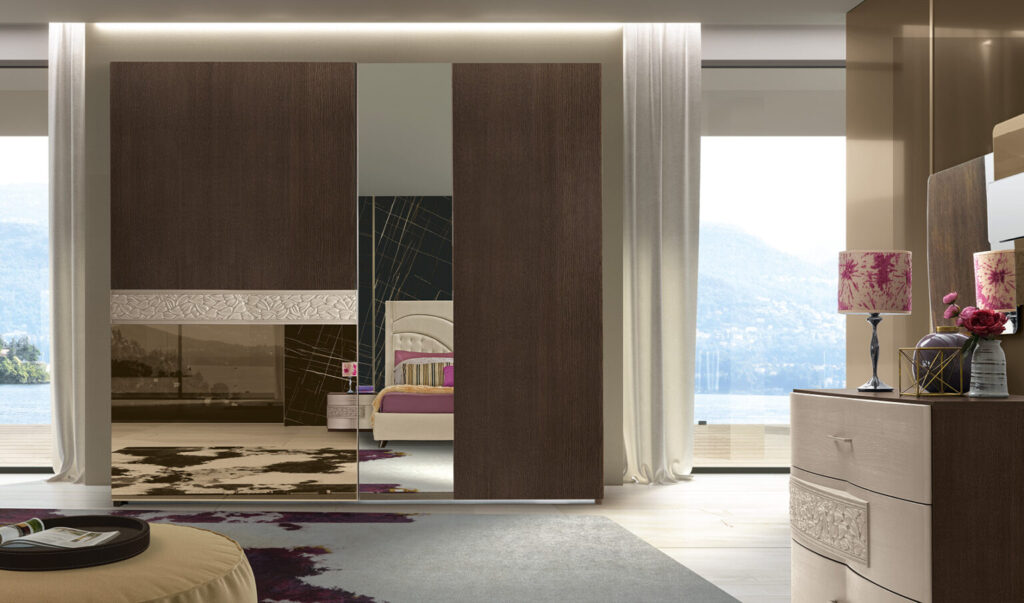 La collezione Nolita 2.2 segue l’onda del cambiamento e si rinnova con forme e abbinamenti di colori nuovi e originali. Armadio 2 ante scorrevoli NOLITA 2.2 con specchi bronzo e chiaro