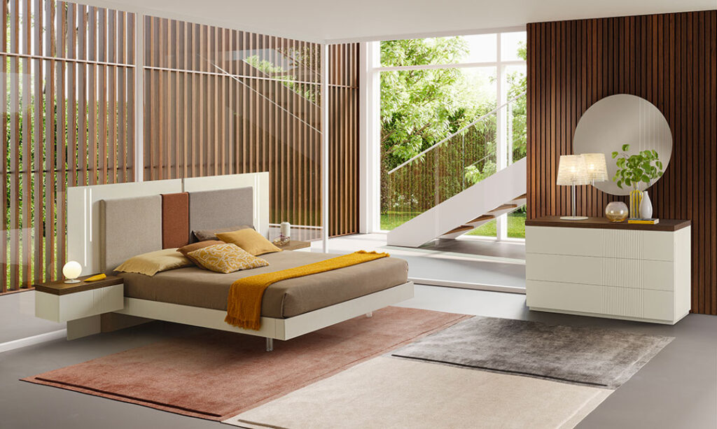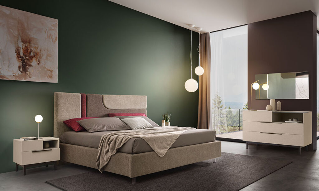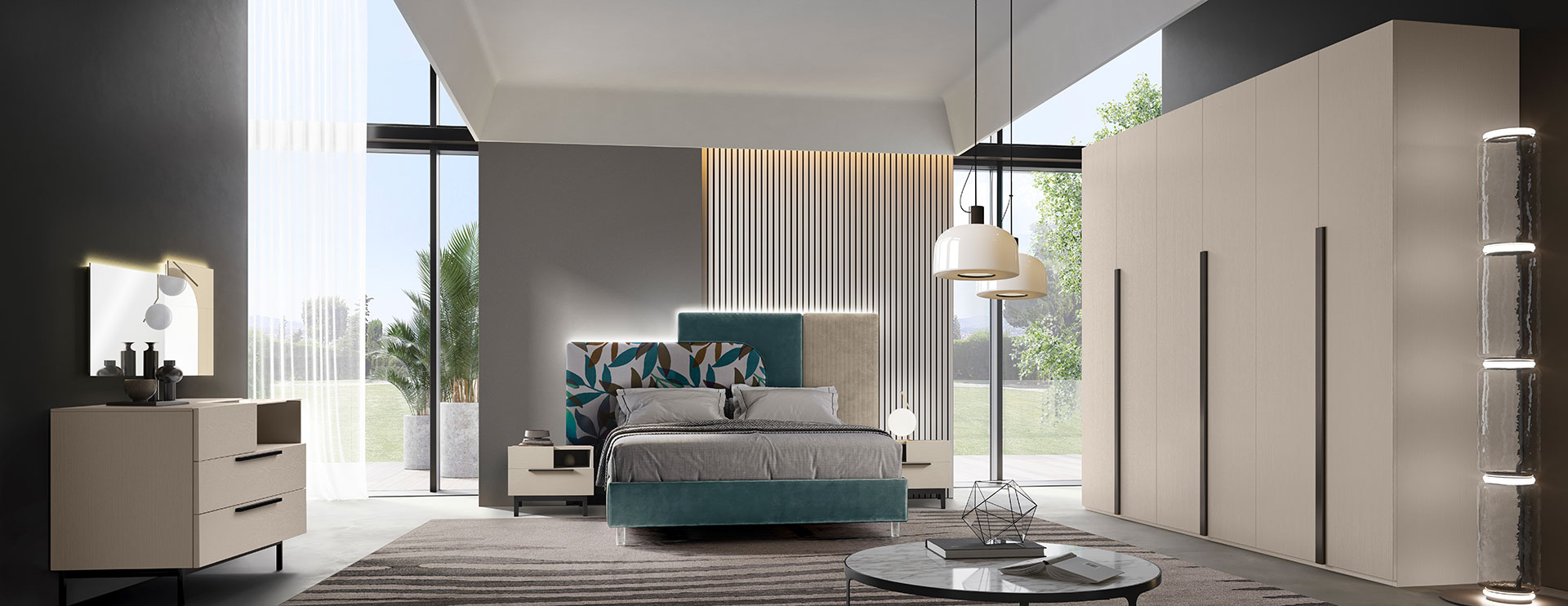 IN FOTO: Letto FLY, Gruppo LINE, Specchiera CIRCE.