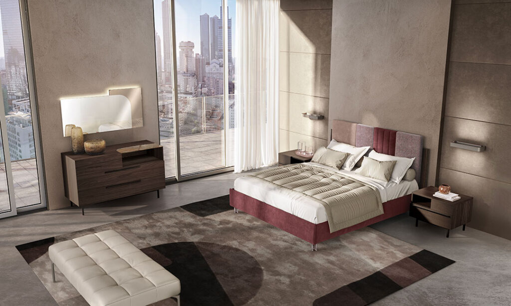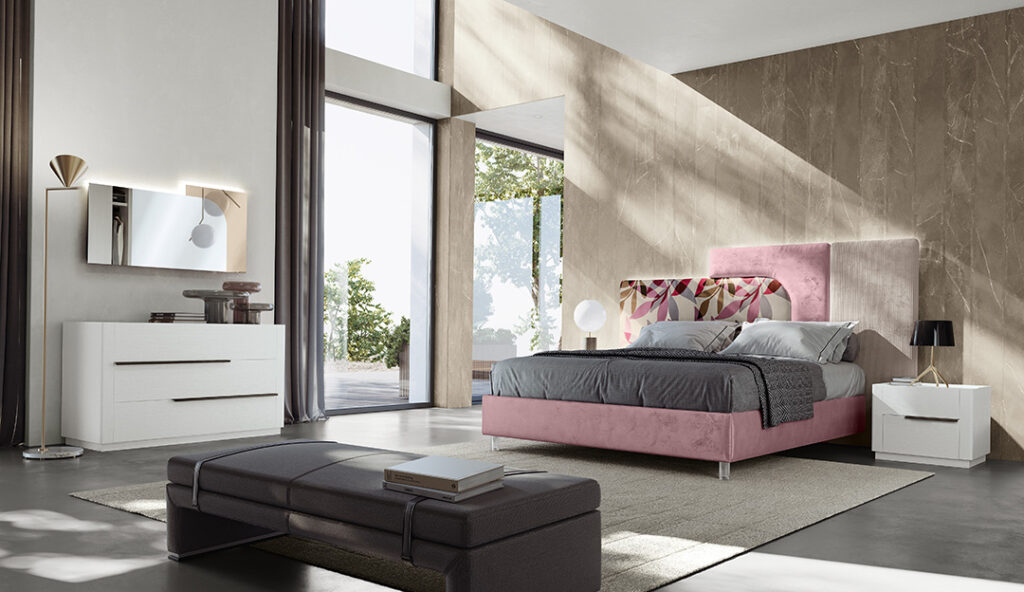 IN FOTO: Letto GLEE, Gruppo LINE, Specchiera CIRCE.